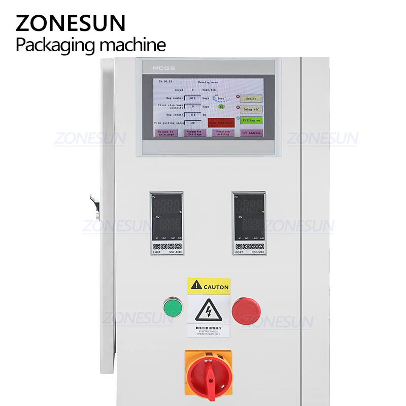 Вертикальная упаковочная машина оснащена интуитивно понятной сенсорной панелью, что обеспечивает простое управление и быструю настройку параметров.