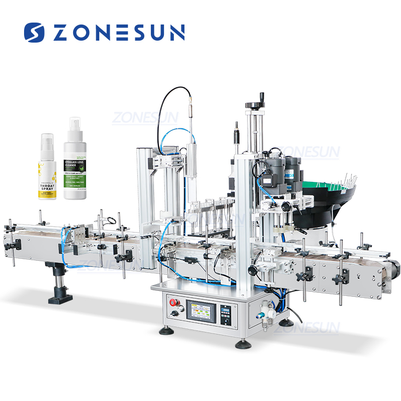 автоматическая настольная машина для закрутки крышек для спреев с подачей крышек ZONESUN ZS-XG1870S