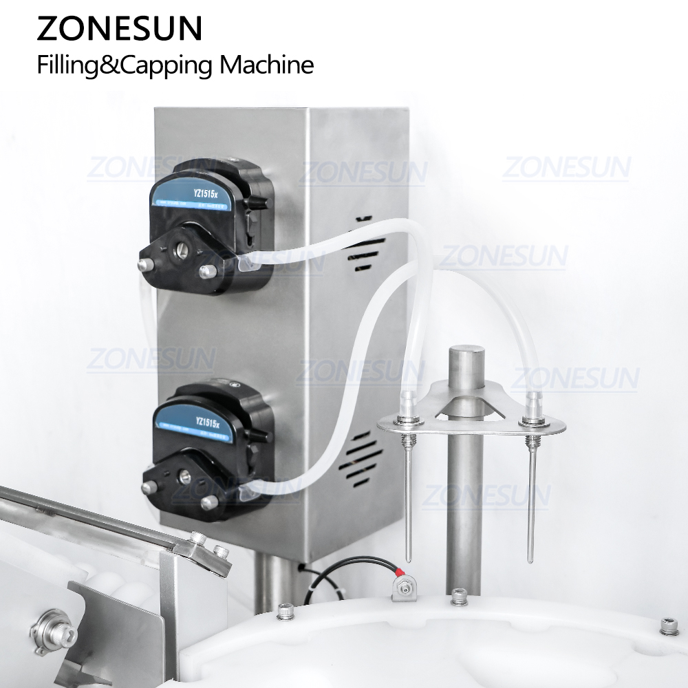 Разливочно-укупорочная машина выполняет розлив и укупорку на одном звёздчатом колесе, благодаря чему имеет компактный корпус и экономит рабочее пространство. Индивидуально разработанная система подачи бутылок подходит для мелкой тары, которая плохо стоит в процессе розлива, что снижает вероятность ошибок. Перистальтический насос обеспечивает прохождение жидкости только через трубку, предотвращая её загрязнение. Все рабочие станции функционируют одновременно, что значительно повышает производительность.