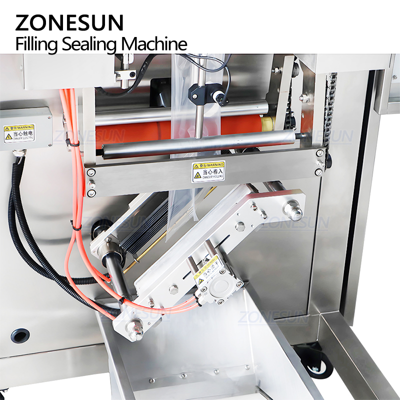 Под действием гравитации длина пакета контролируется фотодатчиком, подходит для упаковки больших объёмов.